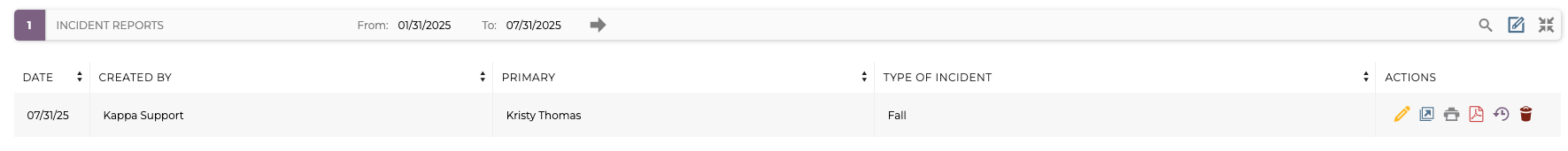 The incident reports section is searchable by date as well, and contains any incident reports either submitted by the caregiver, or that the caregiver was involved in.