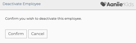 A message appears asking if you want to deactivate the staff member. If so, click Confirm. This action will deactivate the staff member.