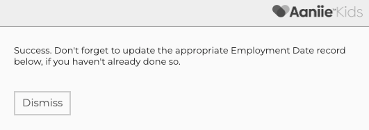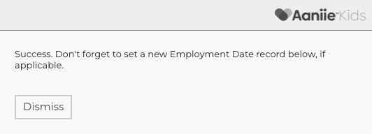 Once deactivated, you will get a pop up giving you a success message. This pop will also remind you to update the appropriate Employment Date record below.