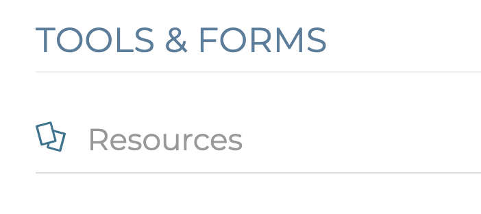 After logging in, there is a Resources section under TOOLS & FORMS. Click Resources.