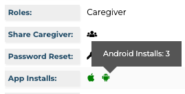 Note: You can see which of your caregivers have downloaded the app in the Quick Menu (+) in Staff Management. Below is an example of a caregiver who has installed the app (1) and another who has not(2):