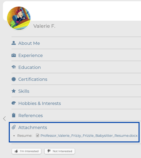 Open the staff’s profile by clicking their profile picture and expand the Client-Facing Attachments section.