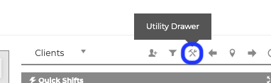 Navigate to the scheduling dashboard Menu > Scheduling > Scheduling Dashboard. Click the Utility Drawer icon.