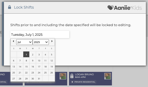 Select the desired date to end lock shifts. (Typically the last day of your last billing period) then click, Save.