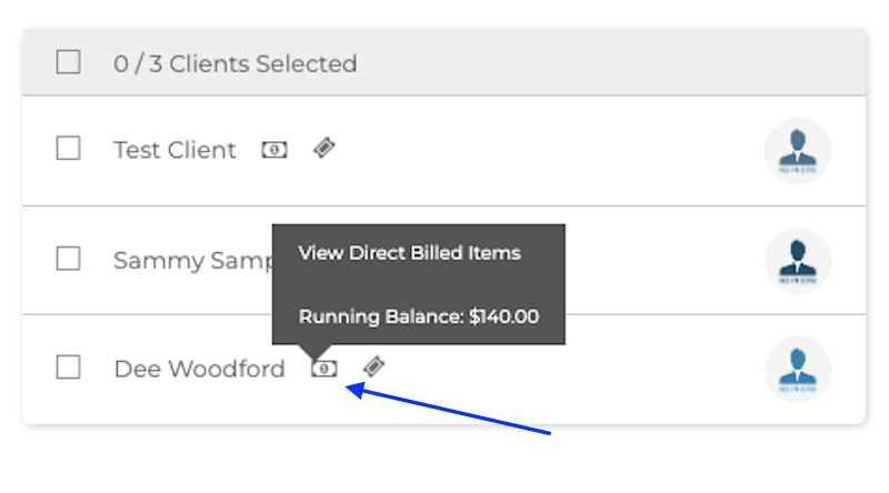 2. Once the invoice has been generated select the money bill icon under the client’s name to pull up shifts you can pay/or cancel upcoming payments.